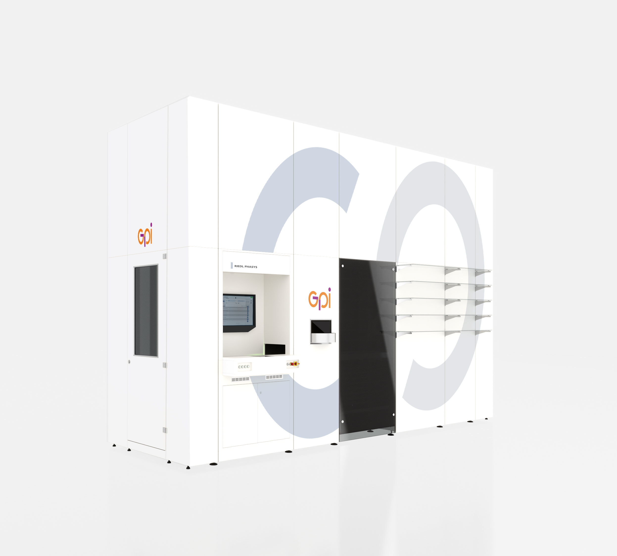 RIEDL Phasys può essere rivestito con pannelli standard o con finiture personalizzabili, per adattarsi allo stile della tua farmacia. L’utilizzo di pannelli in vetro (trasparente o fumè) permette inoltre ai tuoi clienti di apprezzare l’anima tecnologica della tua farmacia.